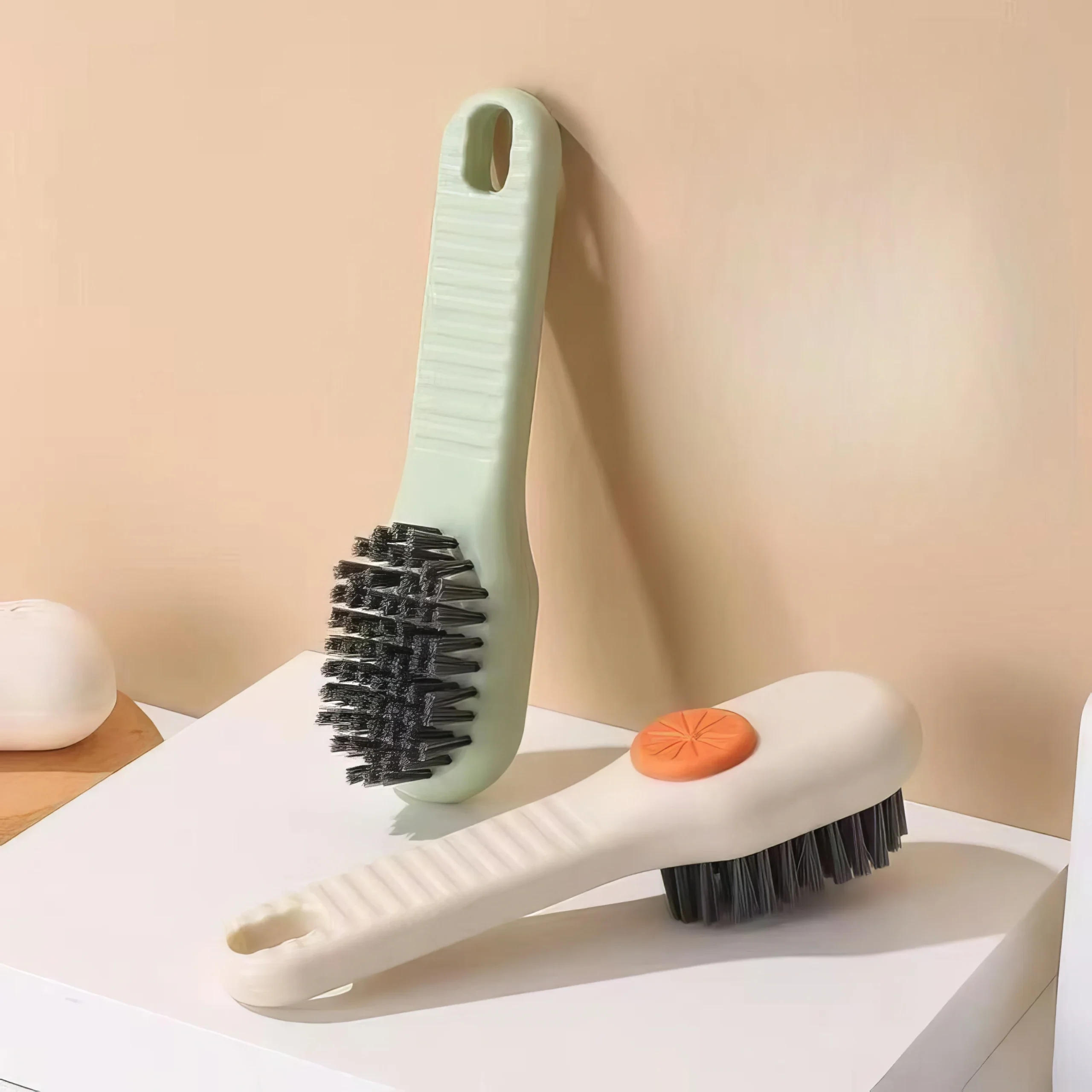 This green soft bristled shoe brush has soft bristles that can protect the shoe upper. The humanized handle design provides a comfortable and effortless grip. It is not only suitable for cleaning various shoes, but can also easily handle stains in the gaps between toilet and bathroom tiles, and even clean outdoor equipment. It is a multifunctional household cleaning tool.