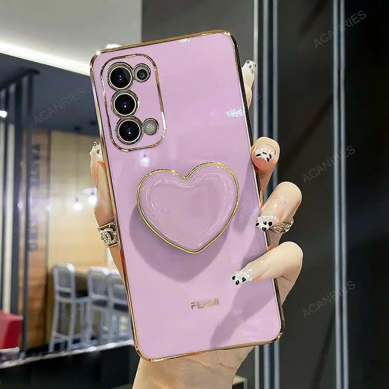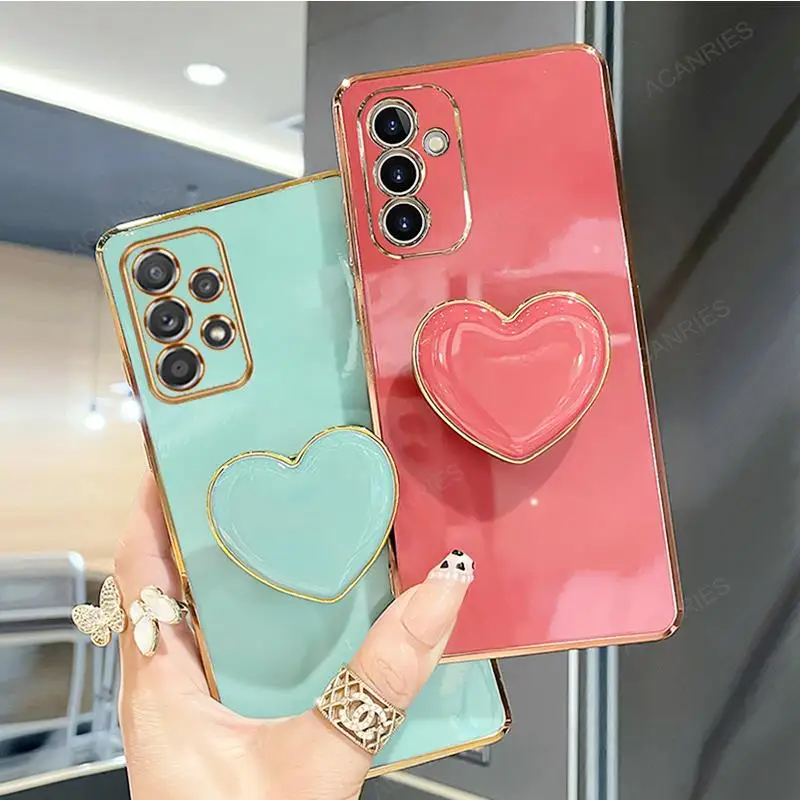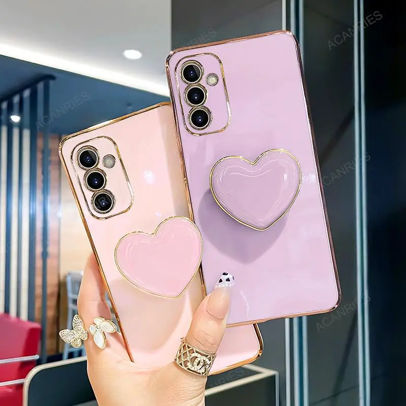 A 55 35 25 15 05 Luxury Love Heart Holder Plating Case For Samsung Galaxy A55 A35 A25 A15 A05S 4g 5g 2024 Stand Silicone Cover
