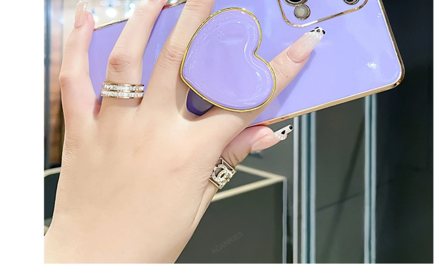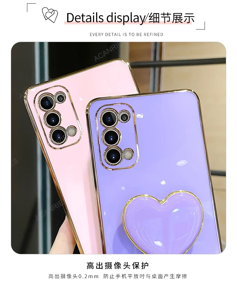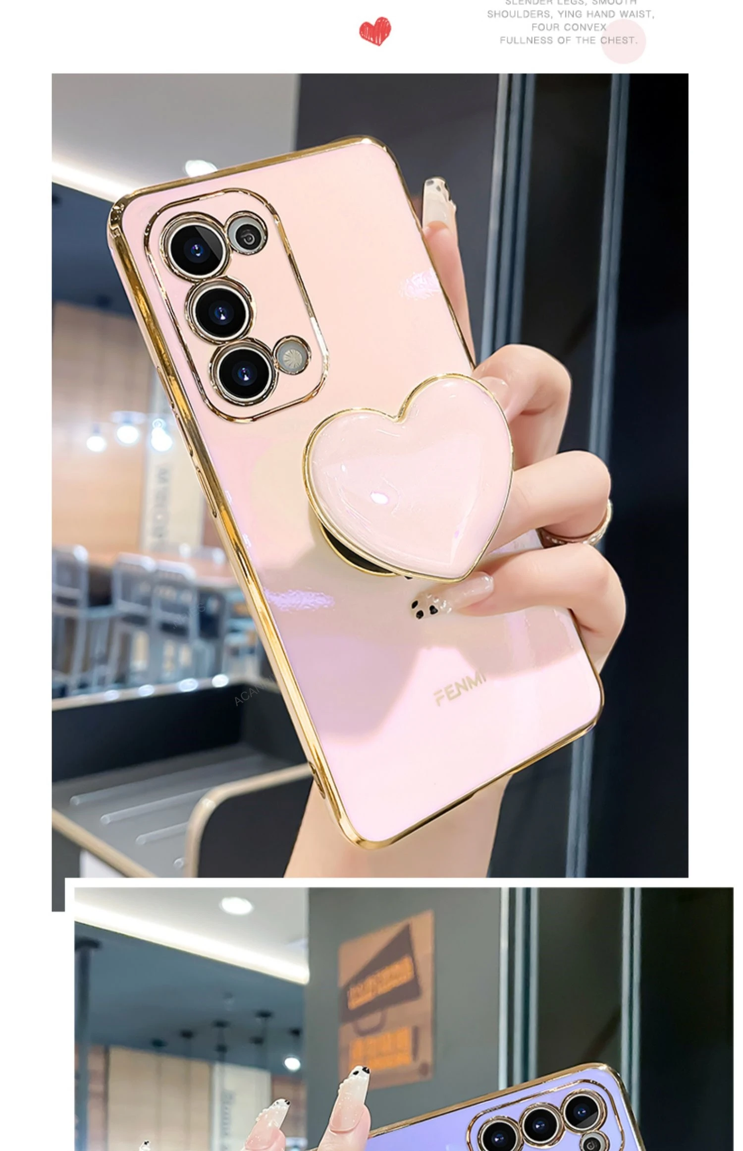 4.Electroplated heart phone holder ,can be expand And fold, easy to grip and take selfies.
