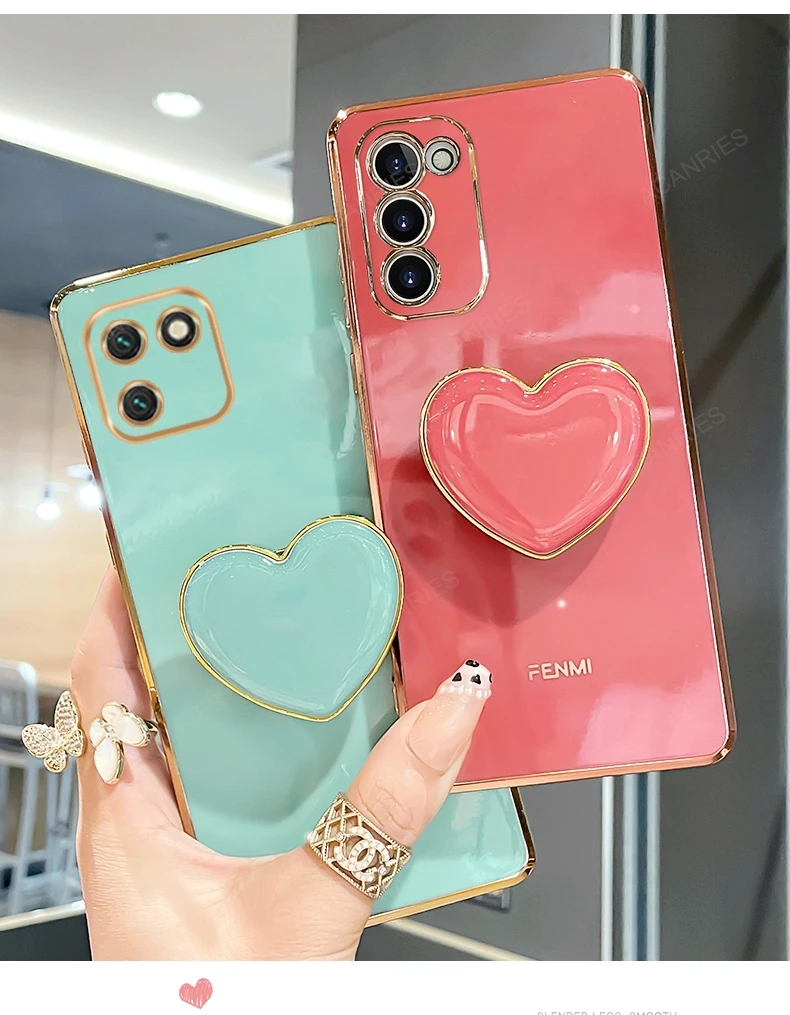 product name: A 55 35 25 15 05 Luxury Love Heart Holder Plating Case For Samsung Galaxy A55 A35 A25 A15 A05S 4g 5g 2024 Stand Silicone Cover