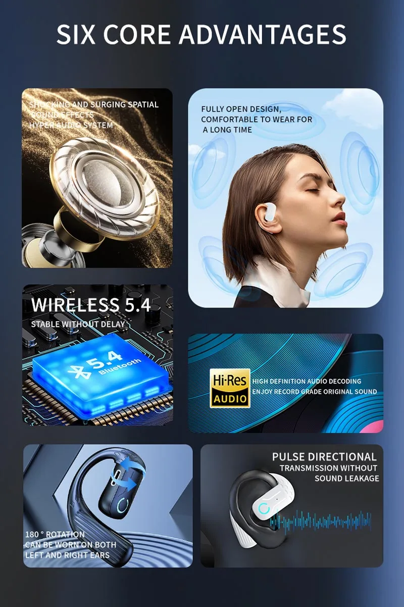 Earpiece Business Headphones Earbuds Single Ear Earpiece Wrap Around Earbuds with Earhooks Bluetooth-compatible Earphone