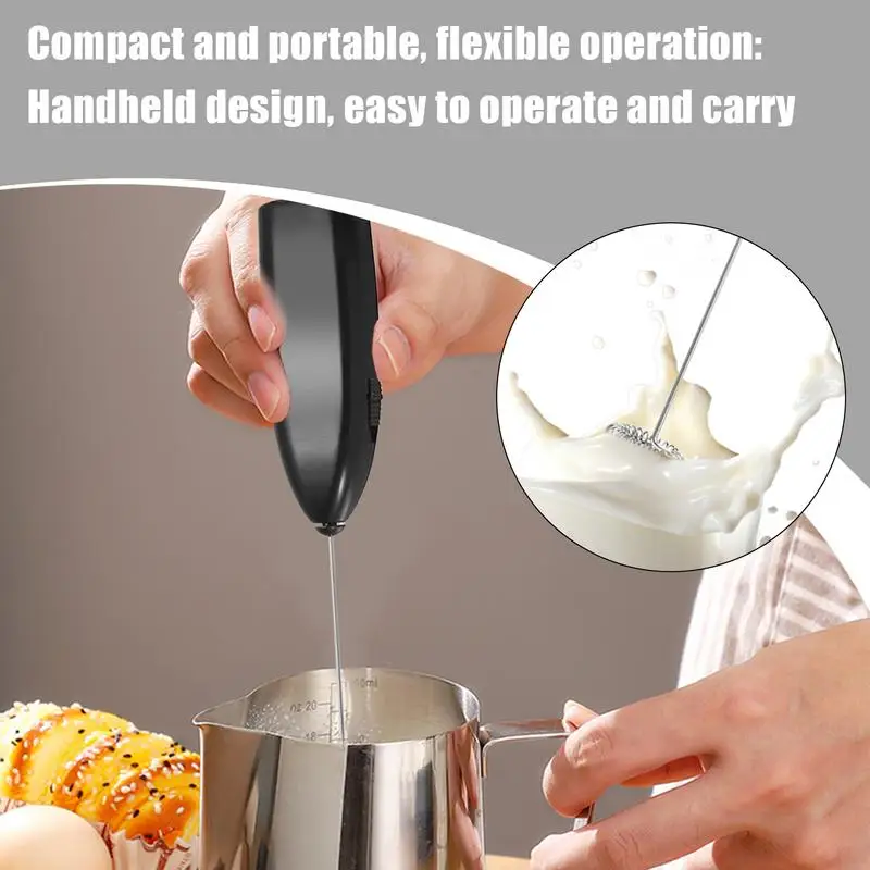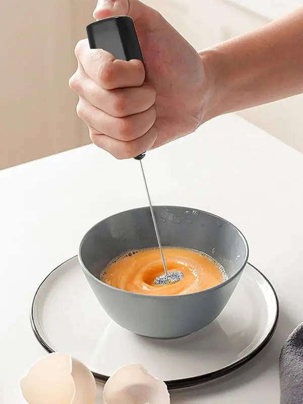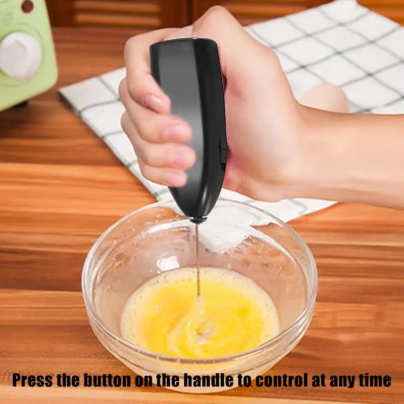 2.By activating the electric driv: Enjoy ideally whipped milk foam in seconds with our small electric egg beater. Simply press a button for an efficient and hands-no frothing experience that saves you time and energy